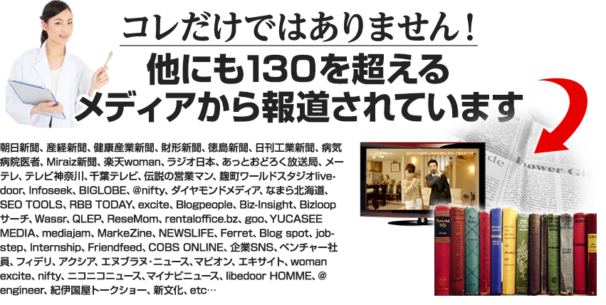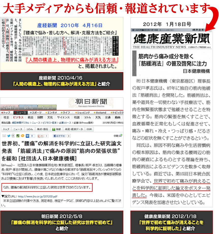 朝日新聞、健康産業新聞をはじめとした大手メディアからも信頼・報道されているので、治療効果が社会的に認められていると言うこともできるでしょう。