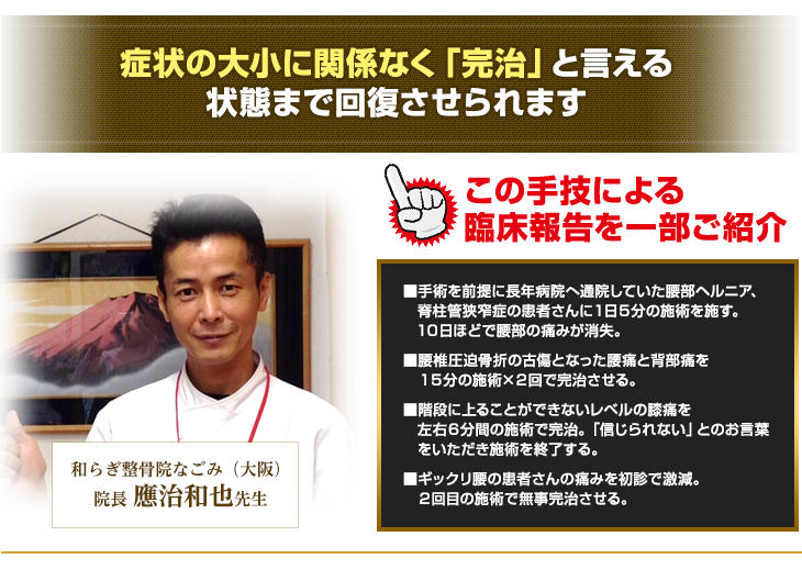 この手技1つあれば、症状の大小に関係なく「完治」と言える状態まで回復させられます。