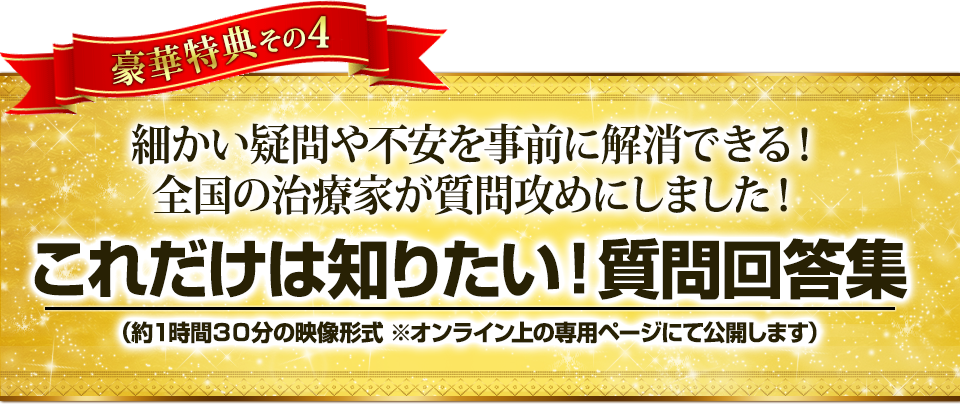 今回この映像では、あなたに代わって全国の治療家の先生から、坂戸先生を徹底的に質問攻めにしてもらい、「そんなこと聞いちゃっていいの?」という部分まで遠慮なく突っ込んでもらいました。