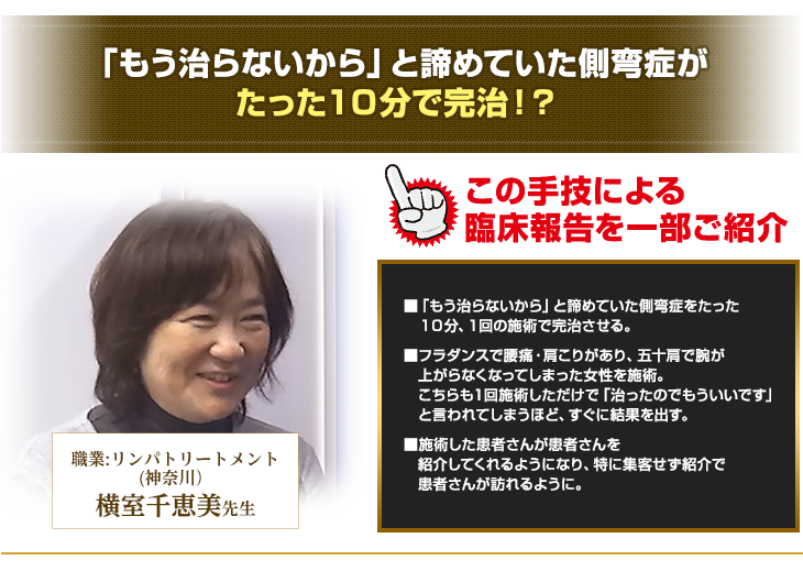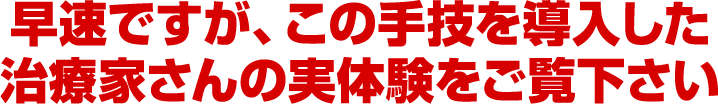 その中でもこの手技は、これからの治療院業界の新しいスタンダードとなる技術であると確信しております。
