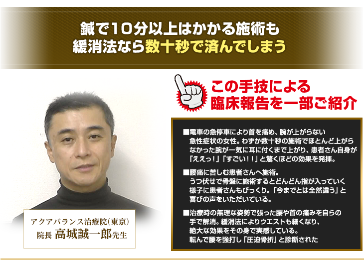 もし先生が、緩消法に少しでもご興味をお持ちくださったのであれば、今すぐにこの手技を手に入れていただきたいと思います。