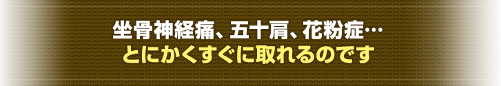こんなに即効で効果の出る治療法には一度も巡り合ったことがありません。