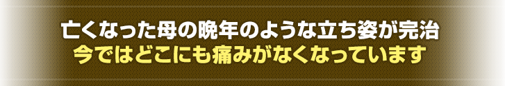 現在では、痛みの本当の原因が筋肉の拘縮・固縮にあることを理解し、痛みの原因を全て取り除けるこの手技を学び、 「絶対に治せる」と確信をもって治療にあたっています。